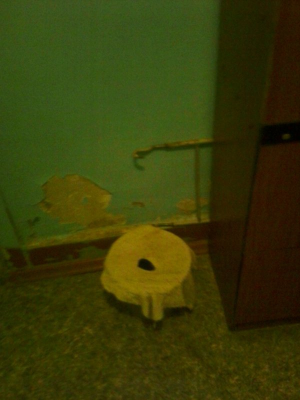 Теперь собственно сама история. Приехав в больницу первое что всех встречает - это вот такой веселый унитаз и холл. Всё обшарпанное, везде отваливается краска, везде полная антисанитария. (взгляд сугубо наш, не профессиональный, все субъективно).