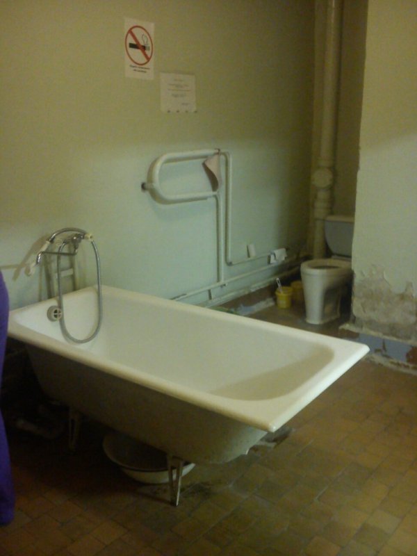 Нас опросила врач, абсолютно не поглядела никакие наши медицинские документы, определила в одноместный бокс. Походу она услышала только слова про "более частый стул", потому что лечить нас стали от кишечной инфекции. После вопроса об исключении осложнения по остеомиелиту - нам было отвечено - "а как я вам его исключу, это рентген делать надо, а где я вам его возьму?". Теперь про условия пребывания в боксе. Первое - стены обшарпанные, везде отваливается краска, жена всю ночь боялась что шмат краски со стены обвалится на неё. Про санузел - вообще отдельная песня, на фото всё видно, к тому же унитаз всё время "бежит". Розетка есть - но не работает. Удлинитель не разрешают, телефон заряжать можно только в приёмном покое, но ребёнка же не бросишь, и телефон там не оставишь. Чтобы не остаться совсем без связи было отключено в телефоне всё что можно.