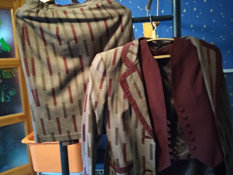 Все детали классные: обработка края, петель, обтянутые пуговицы, жилет в тон...