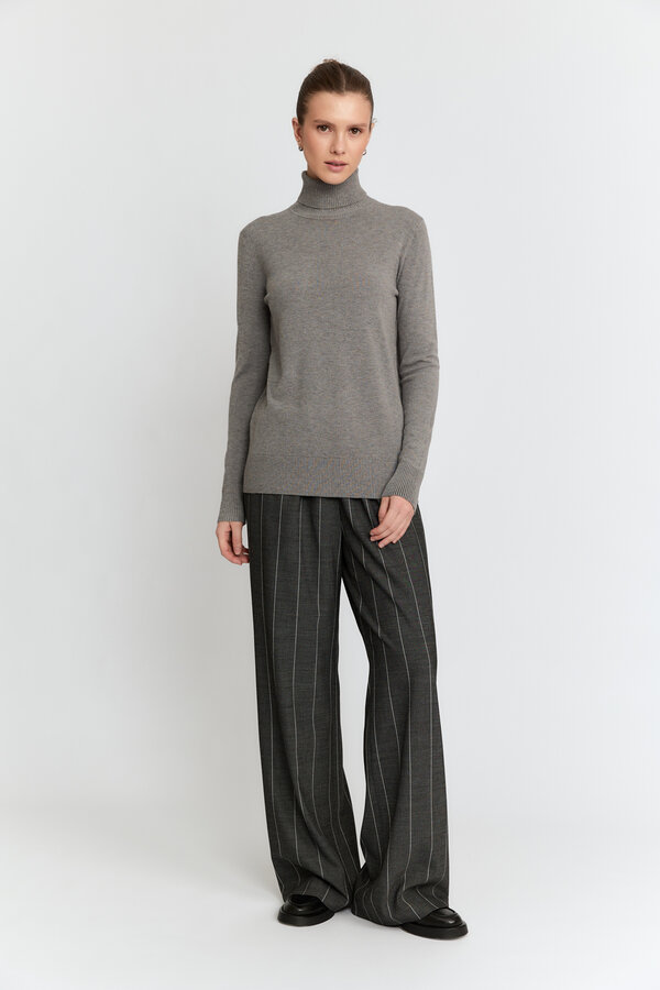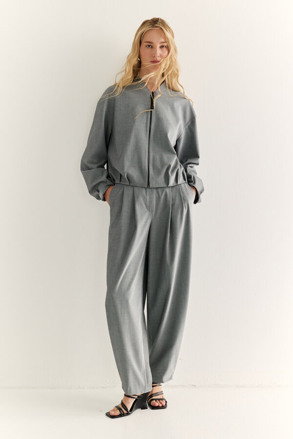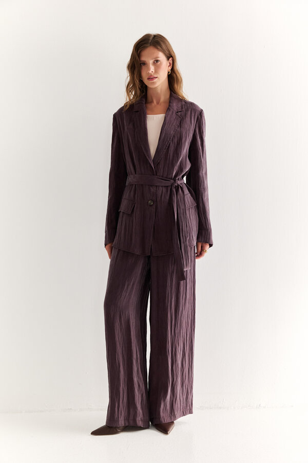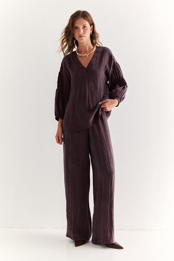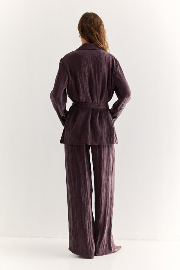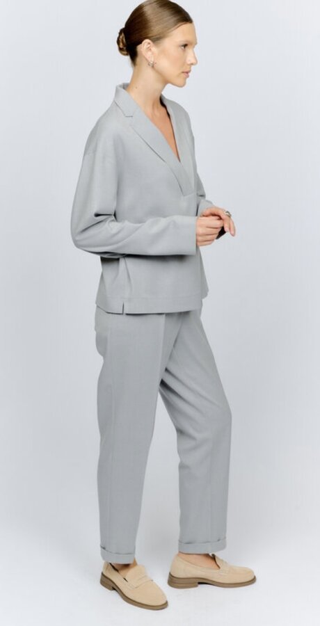 81 Брюки прямые с легким заужением к низу, посадка на талии, длина до щиколотки. NEW PREMIUM QUALITY Костюмная ткань с меланжевым эффектом лавандового цвета (51% п.э., 25% район, 20% шерсть, 4% спандекс) 2100 800