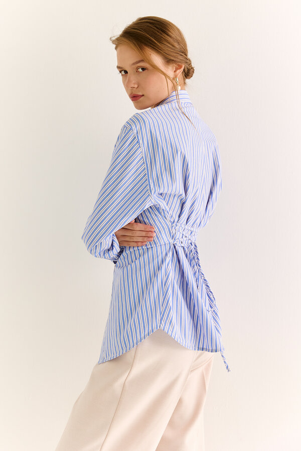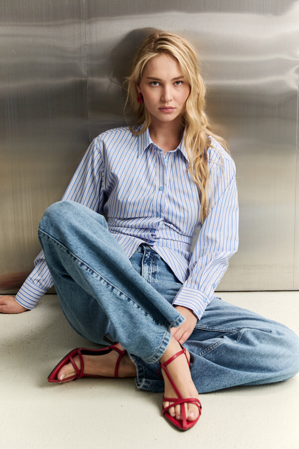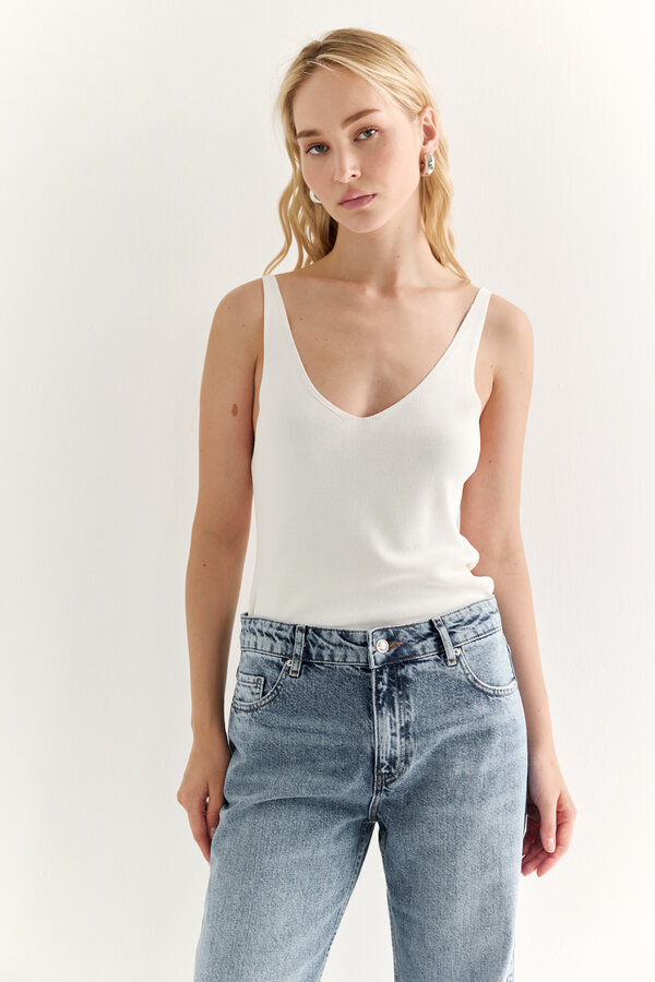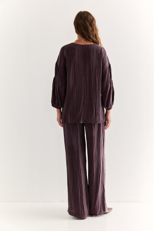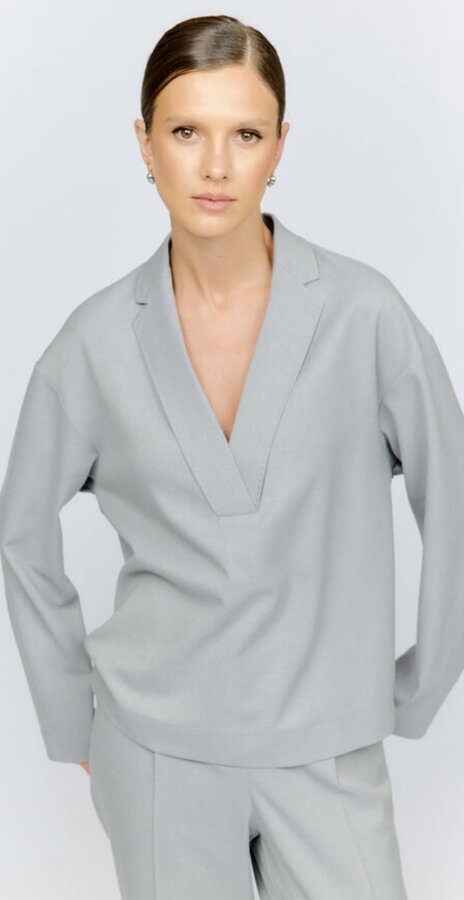 Блуза прямого силуэта с V-образным вырезом горловины и спущенным плечом