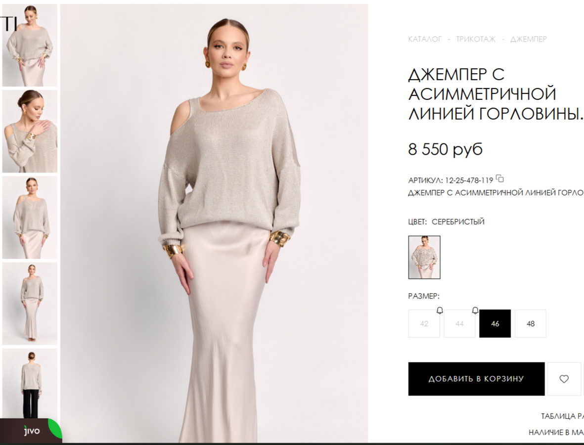 Поставьте, пожалуйста, в пристрой размер вещей 48 Жакет 3393 руб