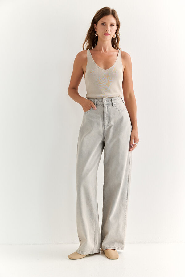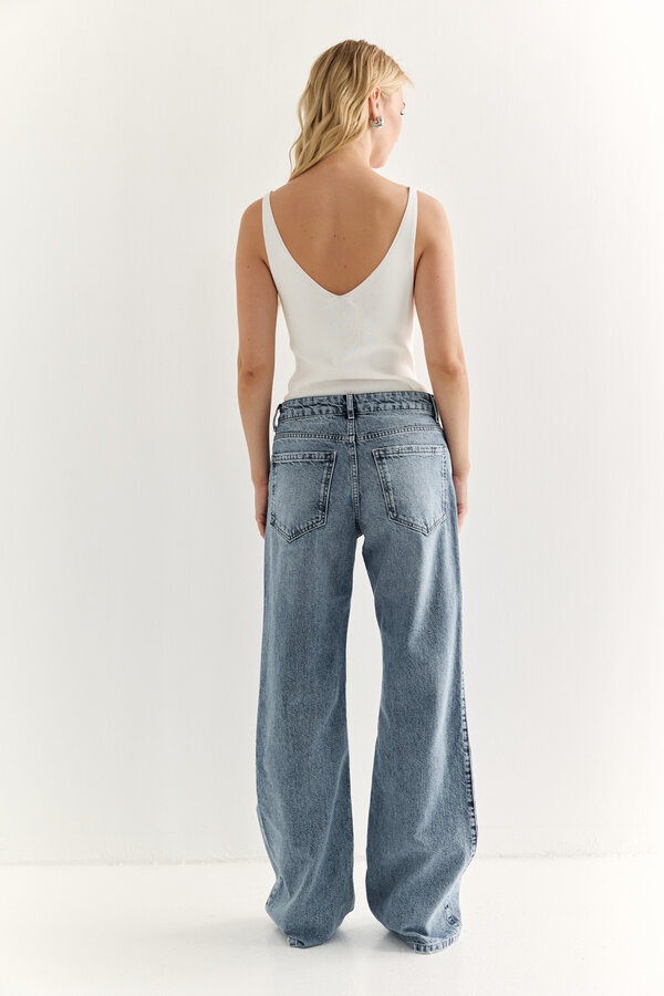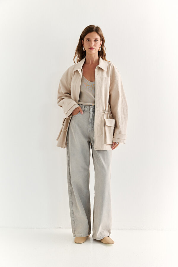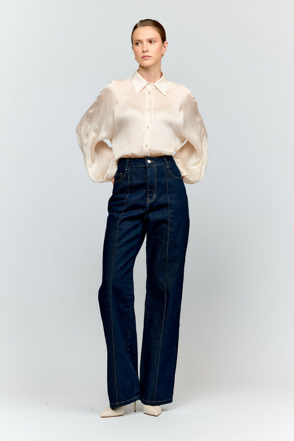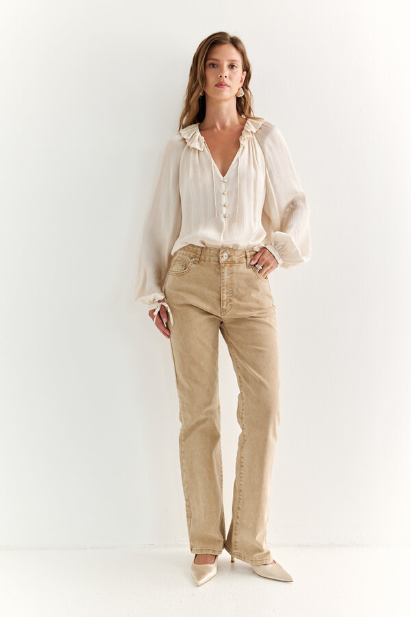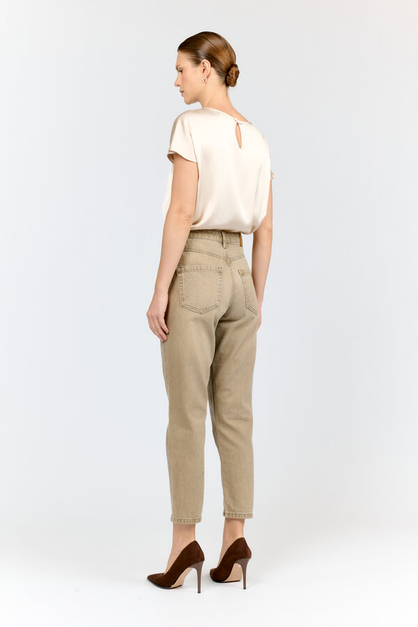 115 Джинсы зауженные к низу с посадкой на талии. Застежка на видимую молнию. По передней и задней части расположены накладные карманы. NEW, PREMIUM QUALITY Хлопковая джинса сливочного цвета (99%хлопок, 1% эластан) 2500