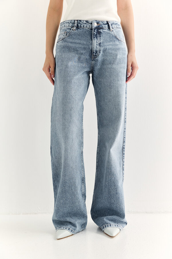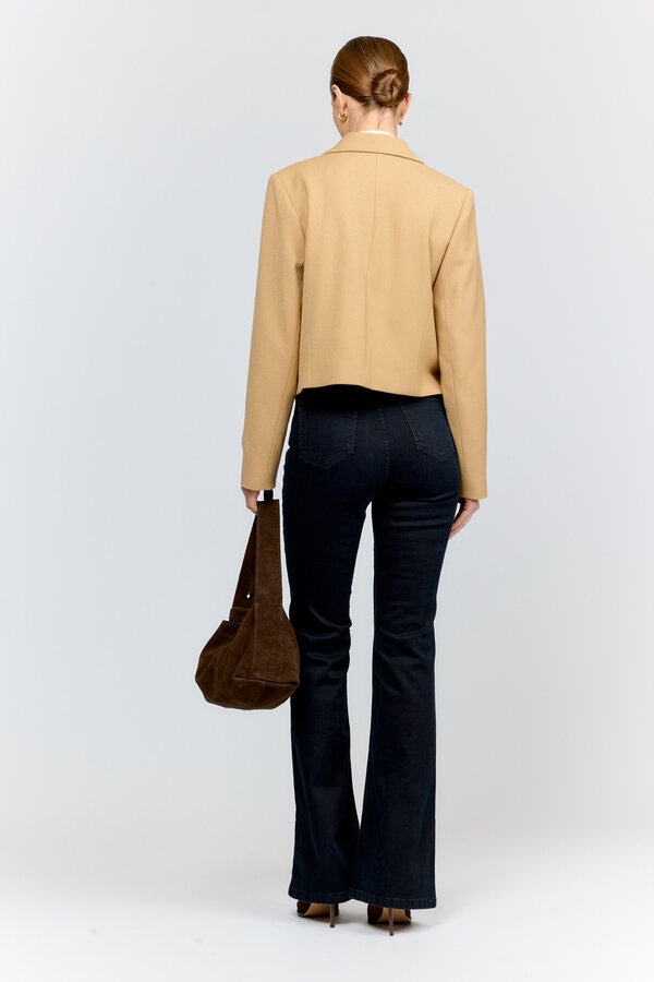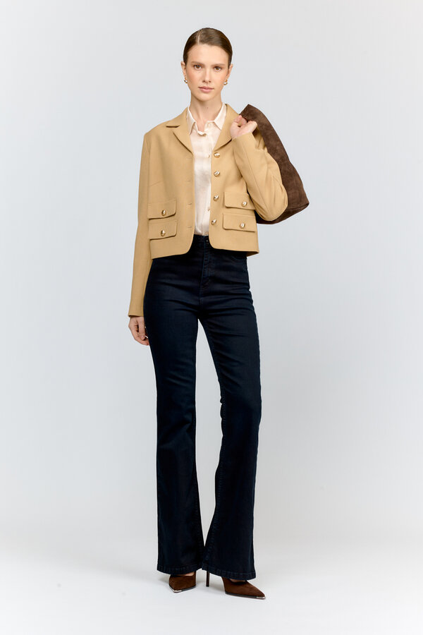 Брюки прямого силуэта с посадкой на талии и фигурным вырезом кармана. По низу брюк расположены разрезы. NEW, PREMIUM QUALITY Хлопковая джинса цвета мокко (99%хлопок, 1% эластан)