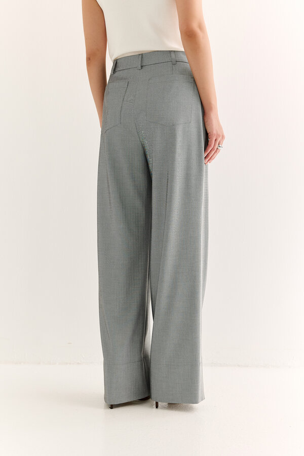 6 Брюки немного расклешенные от бедер. PREMIUM QUALITY. Шерстяная костюмная ткань серого цвета в елочку Burberry Италия (100% шерсть) 5000