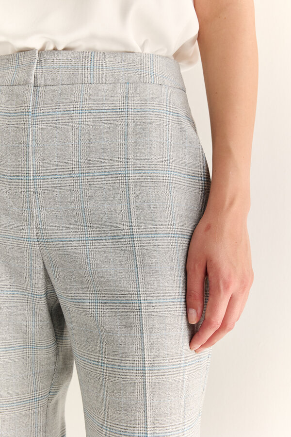 47 Брюки с небольшим клешем от колен. Посадка на талии. Глубокая коричневая клетка с присутствием бирюзового цвета, формоустойчивая и практичная в носке (76% полиэстэр, 22% район, 2% спандекс) 2210 1000