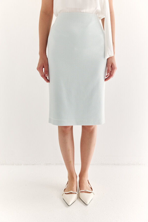 7 ЮБКА СИЛУЭТНАЯ НА ОБТАЧКЕ НА МОЛНИИ. ДЛИНА МИДИ NEW PREMIUM QUALITY Вискоза в диагональную выработку голубого цвета (100% вискоза) 3100