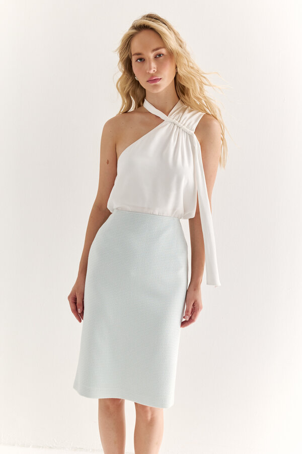 2 Юбка на резинке длины мини. МОЛОЧНО-СЕРЕБРИСТЫЙ (40% ВИСКОЗА,6% МЕТАЛЛИЗИРОВАННОЕ ВОЛОКНО,54% ПОЛИЭСТЕР) 2700