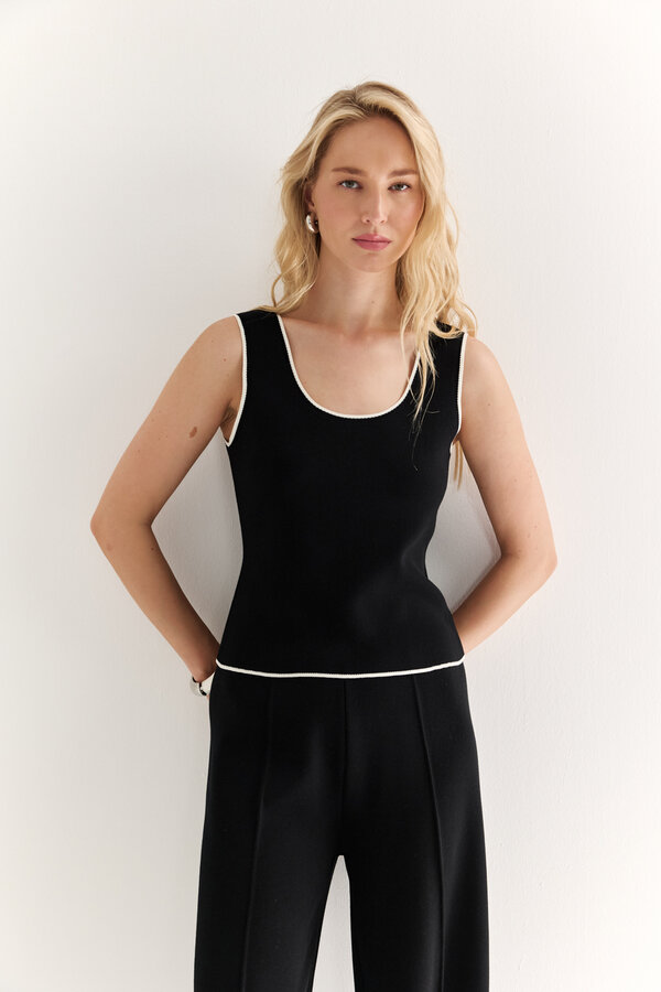 53 Жилет с американской проймой приталенного силуэта с имитацией карманов. Супатная застежка. PREMIUM QUALITY Костюмная ткань с переплетением рогожка в невыраженную полоску черного цвета (80% п.э.,11% вискоза,3% тенсель, 3% шерсть,3% спандекс) 3800