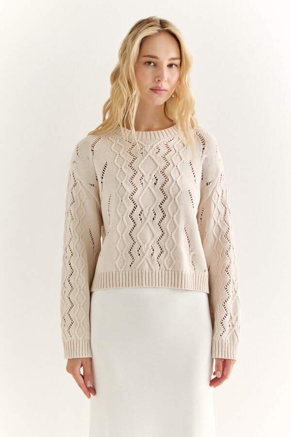 39 Джемпер полуприлегающего силуэта с круглым вырезом Кремовый (72% вискоза,28% эластан) 4100