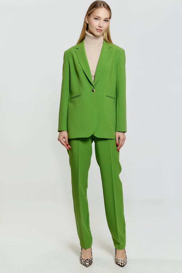 18 Брюки прямого силуэта. С посадкой на талии. Карманы с отрезным бочком. 80% п.э., 11% вискоза, 3% тенсель, 3% шерсть, 3% спандекс NEW PREMIUM QUALITY Костюмная ткань с переплетением рогожка в невыраженную полоску неоново-лимонного цвета 2300 1800
