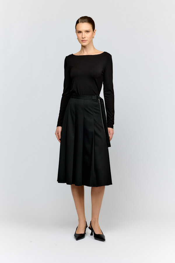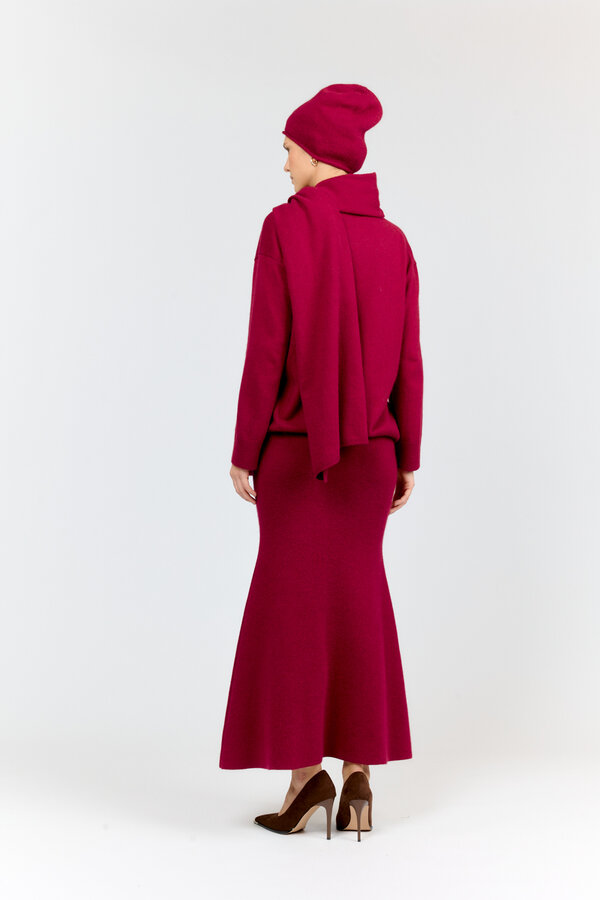 13 Юбка длиной миди с разрезом по центру передней части. PREMIUM QUALITY Костюмная ткань с шерстью цвета барби (46% п.э., 28% тенсель, 20% район, 4% шерсть,2% спандекс) 3450