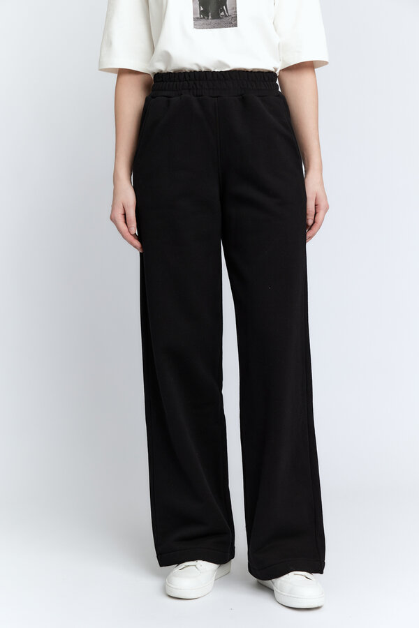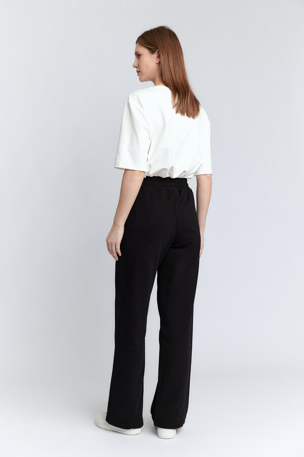 12 Брюки трикотажные на резинке. Трикотаж хлопковый черного цвета (98% хлопок, 2% эластан) 2300 1500
