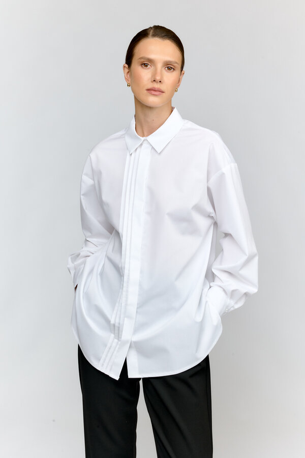 28 Шорты свободного кроя с защипами. Длина до колен. Застежка на пуговицу и молнию. PREMIUM QUALITY Костюмный хлопок белого цвета (97%хлопок, 3%эластан) 3350