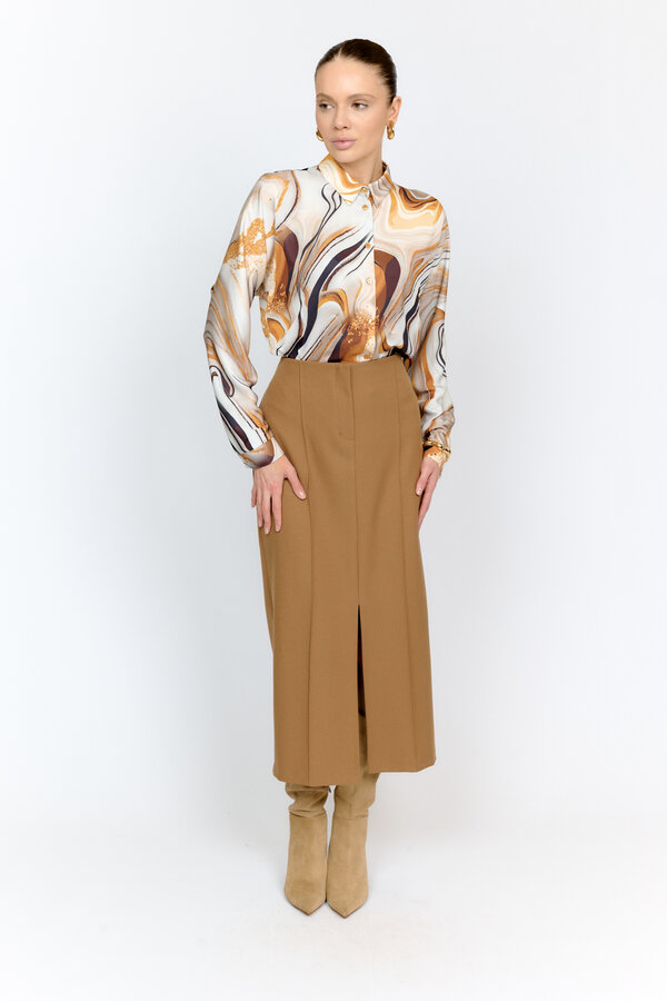 19 Юбка на резинке с запахом. Длина миди. МОЛОЧНЫЙ/ЗОЛОТО (62% ВИСКОЗА,26% ПОЛИАКРИЛ,5% ПОЛИАМИД,4% МЕТАНИТ, 3% ЭЛАСТАН) 4500