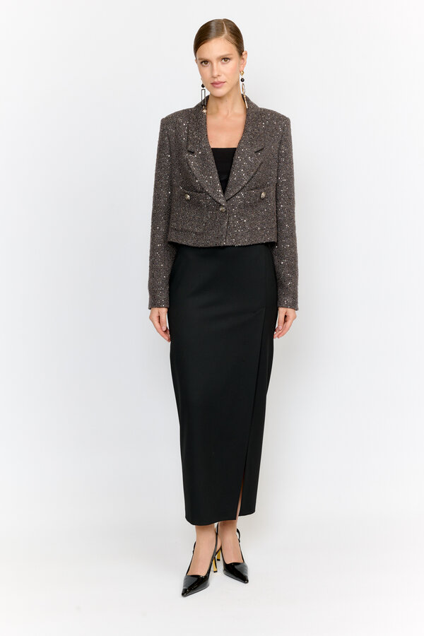 4 Юбка на резинке длины мини. ЧЕРНЫЙ/ЧЕРНЫЙ (40% ВИСКОЗА, 6% МЕТАЛЛИЗИРОВАННОЕ ВОЛОКНО, 54% ПОЛИЭСТЕР) 2700