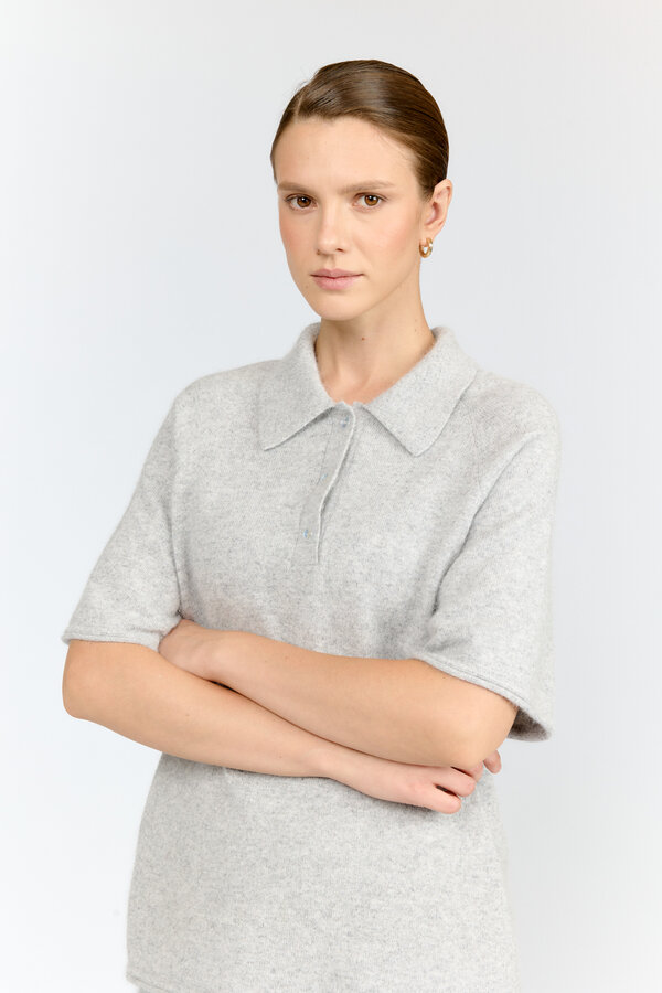 14 Джемпер вязаный с коротким рукавом прямого кроя Темно-бежево/молочный (100% МЕРСЕРИЗИРОВАННЫЙ ХЛОПОК) 3000