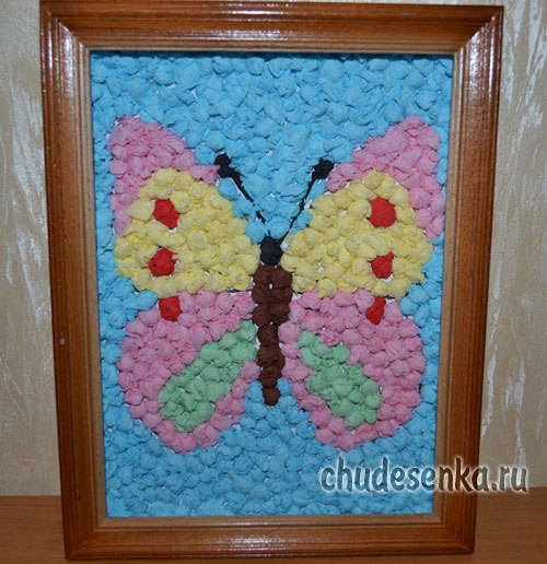 В нашем же случае фон вокруг бабочки мы решили тоже заклеить шариками из салфеток.