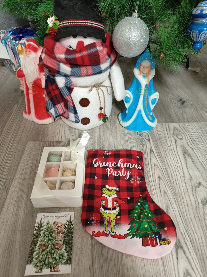 В пакетике новогодний носок с Гринчем, а в носке открытка с добрыми словами и вкусняшка?