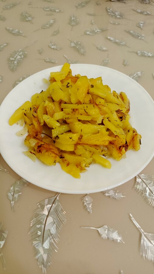 Жареная картошка с салатом.