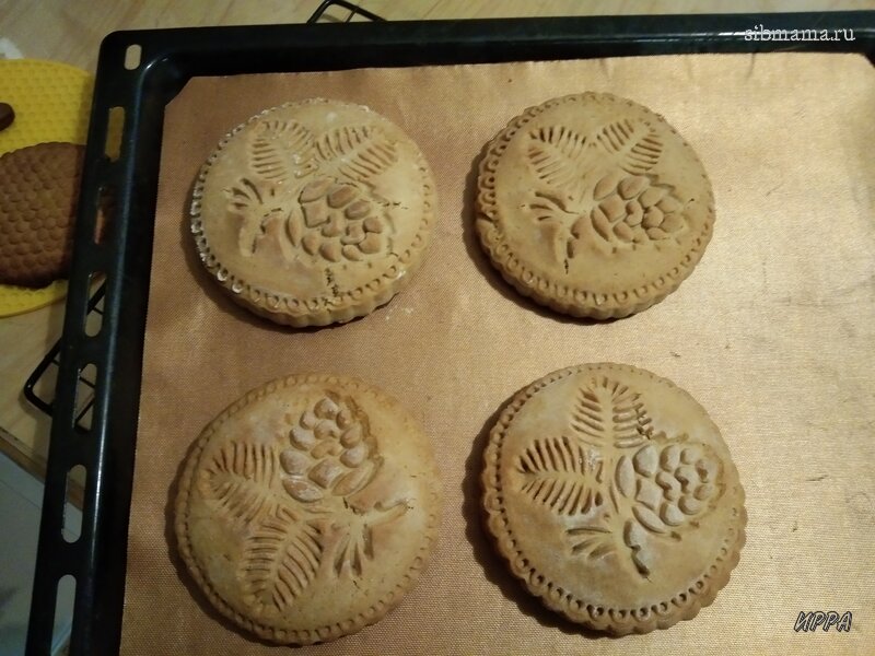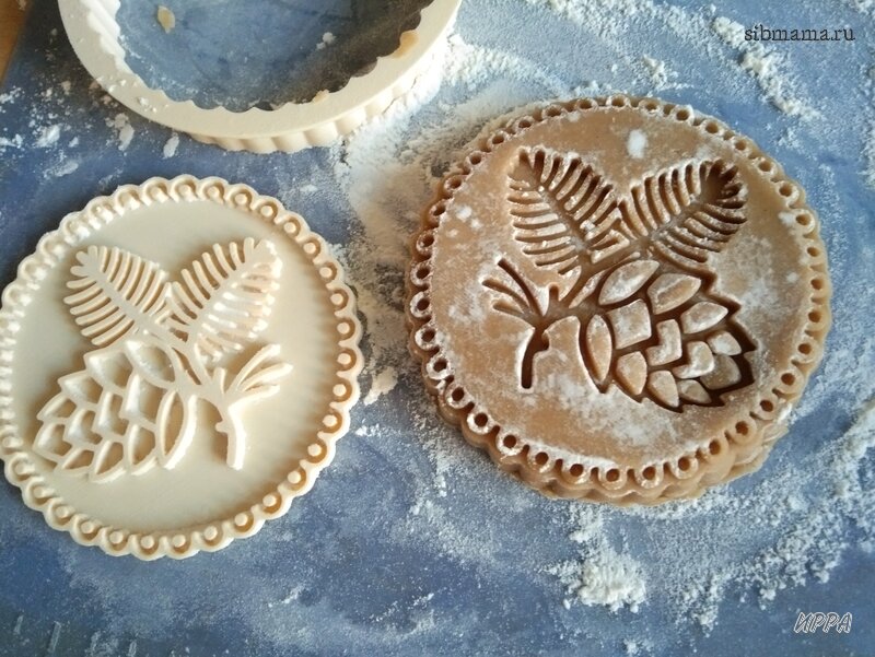 Я из него уже делала шишки, ёлки, рельефные печенья. Это тесто очень ароматное, вкусное и отличное в работе. Единственное, что я поменяла в ее рецепте - это заменила разрыхлитель на соду (т.к. в рецепте мёд) и взяла эту соду в меньшем количестве, чем бы полагалось, т.к. нужно, чтобы рельеф не поплыл, а это значит, что тесто не должно сильно увеличиваться в объеме.