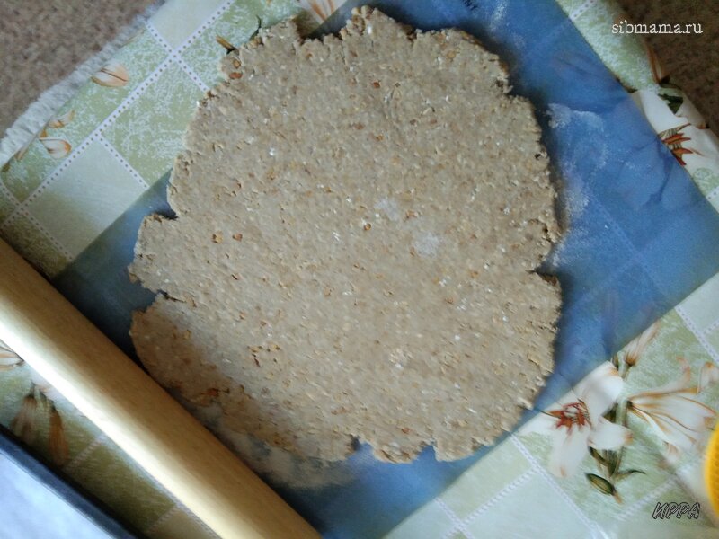 8. Тесто нужно раскатать в пласт толщиной не меньше 3 мм. Можно чуть толще, но не намного. После раскатки тесто хорошо подпылить мукой, я использую рисовую муку.