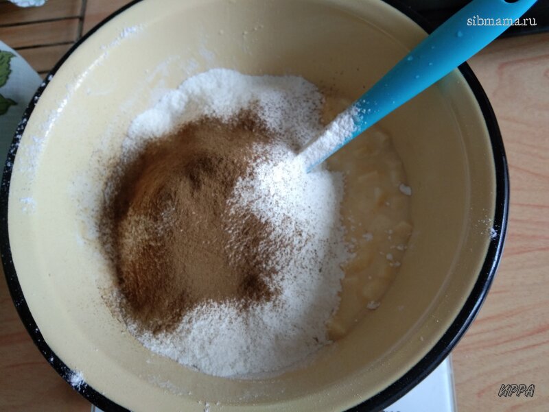 Технология обычная: сухие и влажные продукты смешиваются по-отдельности, затем смешиваются вместе, обычной лопаткой, взбивать ничего не надо! Заменять соду на разрыхлитель тоже не стоит.