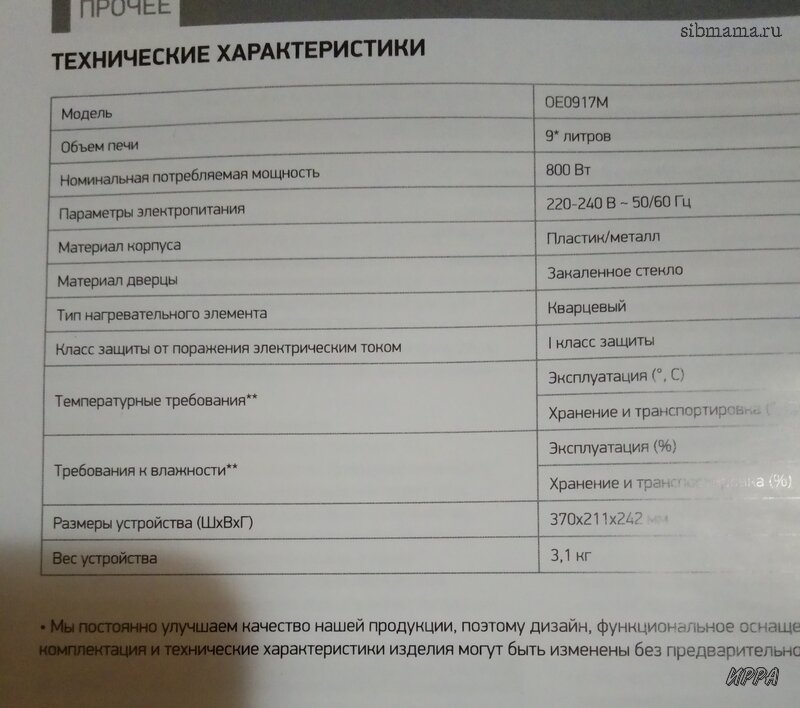 Ирина, добрый день. Подскажите какой объем и какая мощность у вашей мини-печи?