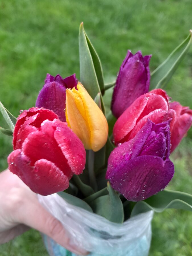 У нас на даче до тюльпанов еще далеко, но вот участок с кустами смородины оттаял полностью. Остальное все под снегом, включая цветники. Надеюсь, растает до майских-то праздников.