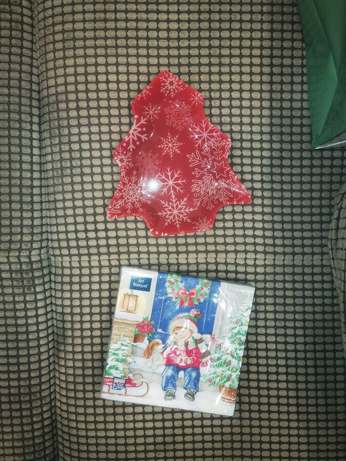 А ещё, а ещё :новогодние салфеточки и новогодняя тарелочка, будем использовать её для вкусняшек🍬🍭🍫: