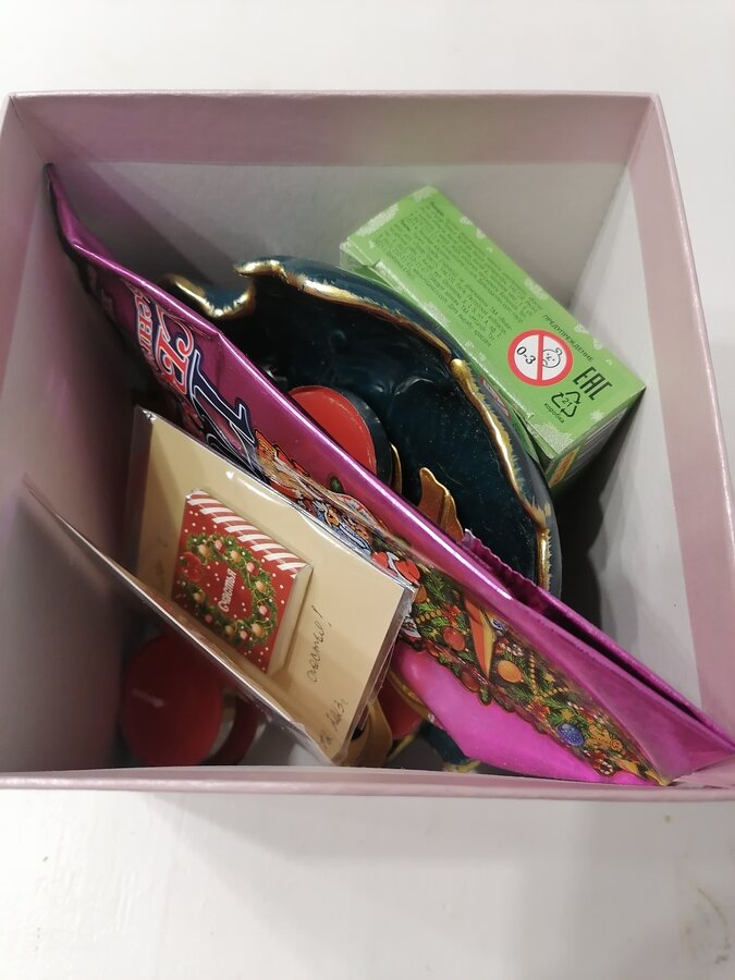 Вот такая красивая коробка новогодняя, сразу видно, что подготовка была непростой!
