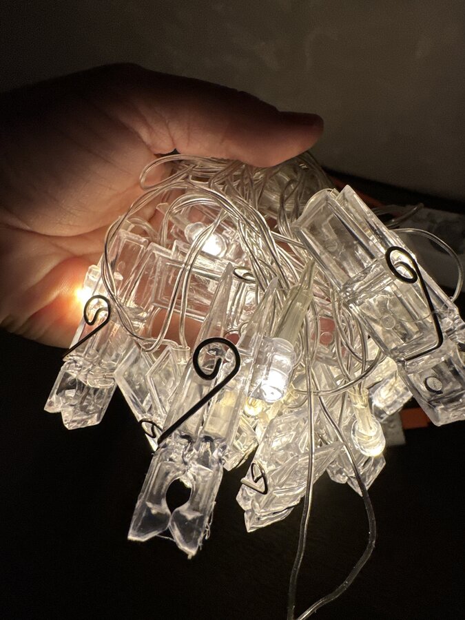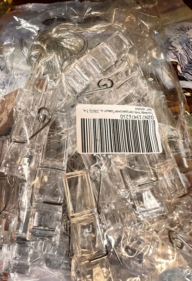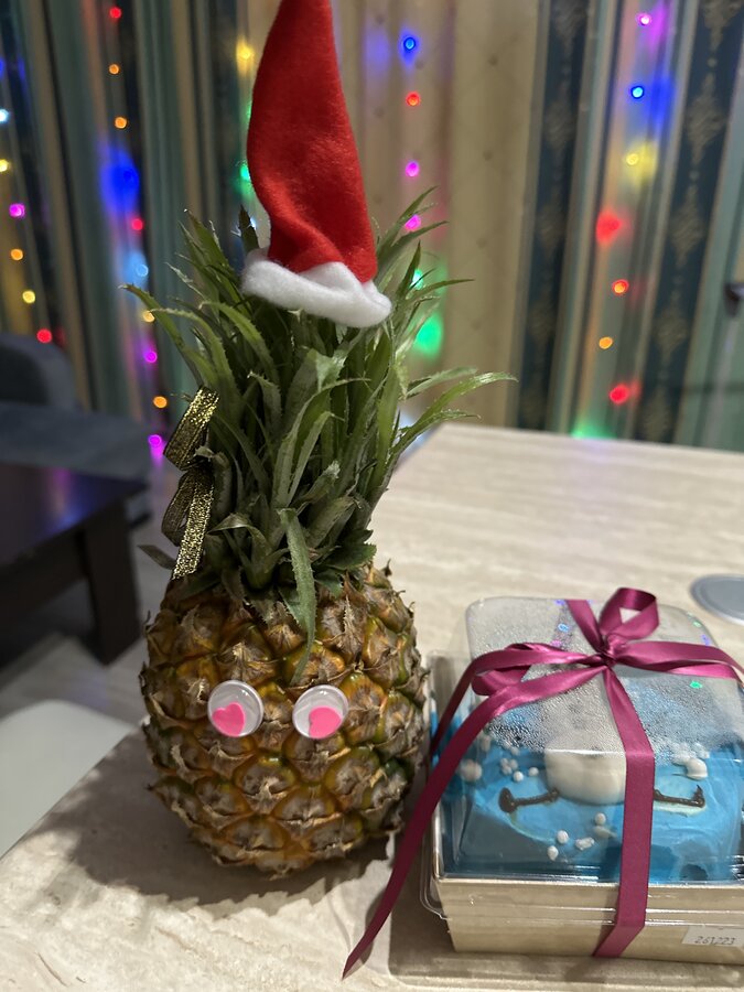 Вот такая красивая гирлянда-прищепка и колпачки новогодние на приборы ( у меня оделся ананас) :haha:
