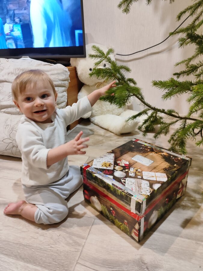 Я забрала подарок, как только смогла. Но потом приболела, не было сил, никак не приходило настроение и еще я ждала ёлку. И вот сегодня все совпало. Ёлка стоит, подарок в руках, вся семья замерла в ожидании!