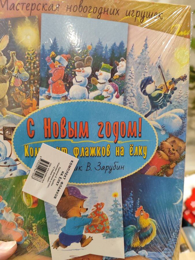 Красивая мишура, и комплект новогодних флажков с открытками Зарубина. Я их Обожаю!!! С самого детства! Я их даже перерисовывала! Спасибо!
