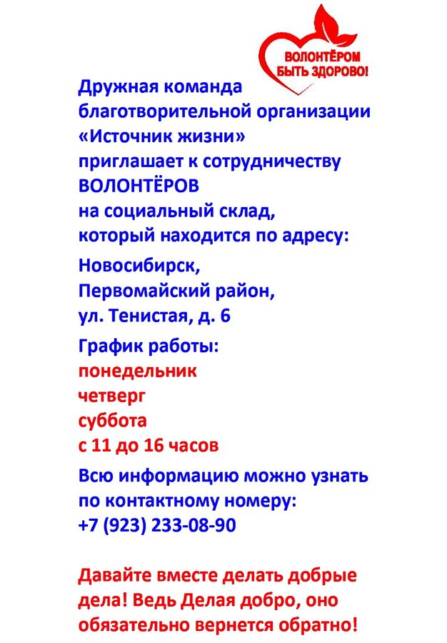 С уважением, НРБОО "Источник жизни", г.Новосибирск
