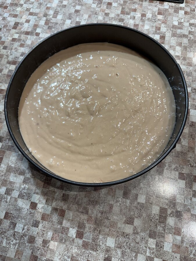 Формы смазываем маслом при необходимости. Разливаем тесто в 2 формы примерным диаметром 19 см.
