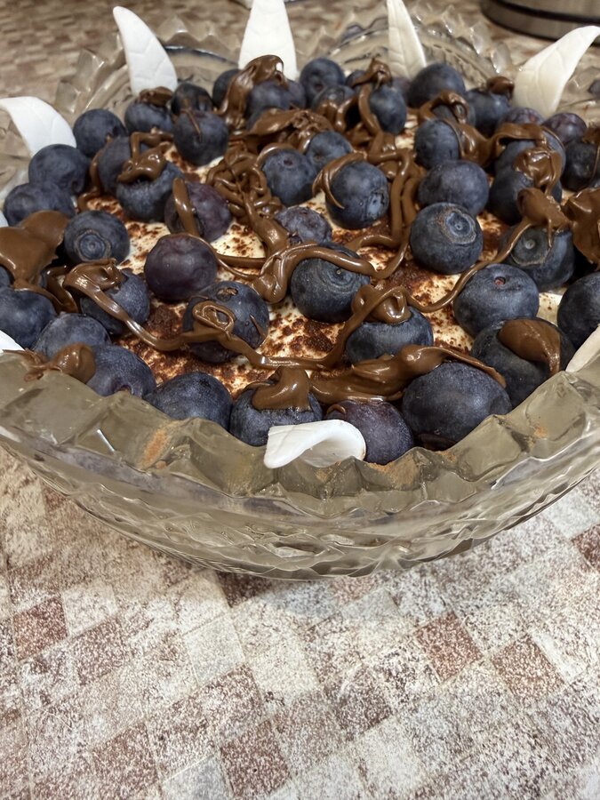Домашним еще и десерт из остатков крема и бисквита получился