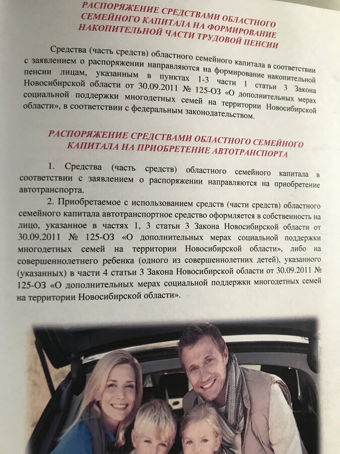 Основание: Постановление Правительства Новосибирской области от 09.07.2012 N 322-п «Об утверждении Порядка приобретения автомобильного транспорта для многодетных семей, воспитывающих семь и более несовершеннолетних детей»