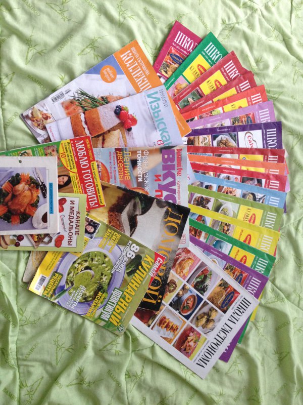 Вот такое количество кулинарных журналов Школа гастронома (16 штук), два года их собирала и ещё несколько журналов кулинарных меняю на среднюю банку пасты Нуттелла и 1,5 килограмма яблок сочных и сладких!)