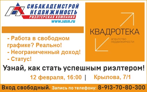 Я всех приглашаю в свою тему - Агентство Недвижимости Квадротека , - в которой буду отвечать на вопросы, рассказывать о работе риэлтером КОНКРЕТНО В НАШЕМ АГЕНТСТВЕ НЕДВИЖИМОСТИ, а не нести ответственность за весь рынок недвижимости Новосибирска :aga-aga: :-)