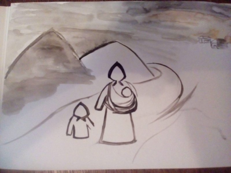 И я плюхнулась в ощущение бесконечного горя, потери, страха. Передо мной встала картинка эвакуации, когда я иду-бегу-спасаюсь с детьми, сын примотан ко мне, дочка маленькая рядом. И мы уходим в бесконечную серость по темной разбитой дороге, оставляя позади свою жизнь. Потом - другая, как я теряю дочь. И столько безысходности, горя, невозможности в этом. И моей вины, несмотря ни на что.