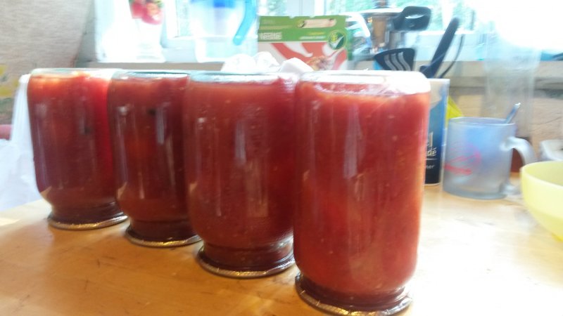 Рецепт выкладывала в теме раньше, если кому интересно. Делала в этом году не через сито, а на соковыжималке. Так что если у кого есть соковыжималка с функцией пюре, то можно не заморачиваться с распариванием и протиранием помидоров через сито!