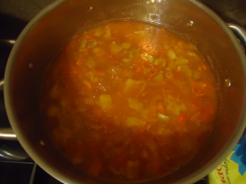 закипело,через 15мин перец.перец чёрный..и 30 мин поварить на медленном огне.