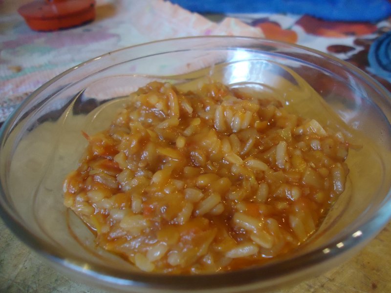 Тушить 1 час, постоянно помешивая (каждые 5 минут, то рис может пригореть!!!). Можно добавить 0,5 ст водички, НО нежелательно!
