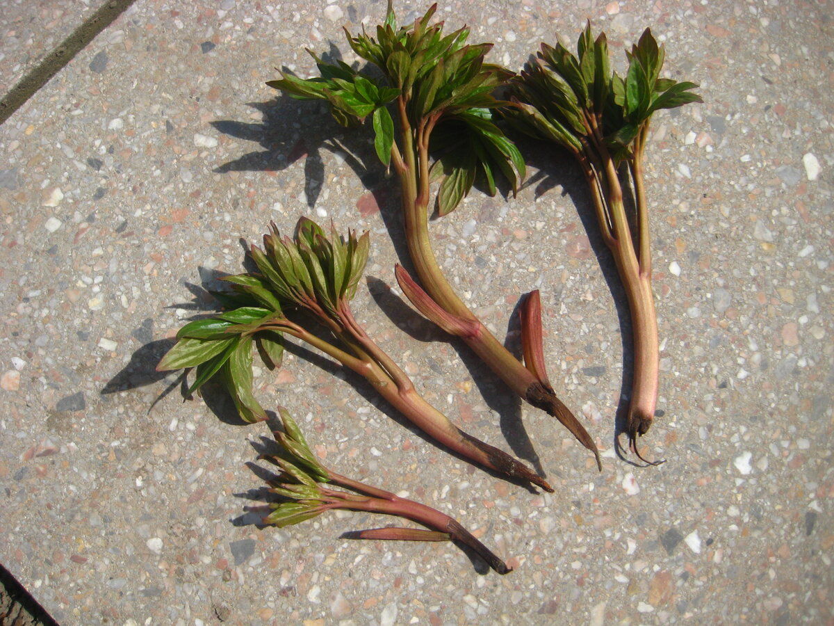 Пионы нынче порадовали прошлой осенью разделила куст и пересадила на новое место. Так как делала в первый раз, то думала, что не выживут, уже даже мысленно попрощалась с ними. Сегодня посмотрела, а они - красавцы - краснеют росточками