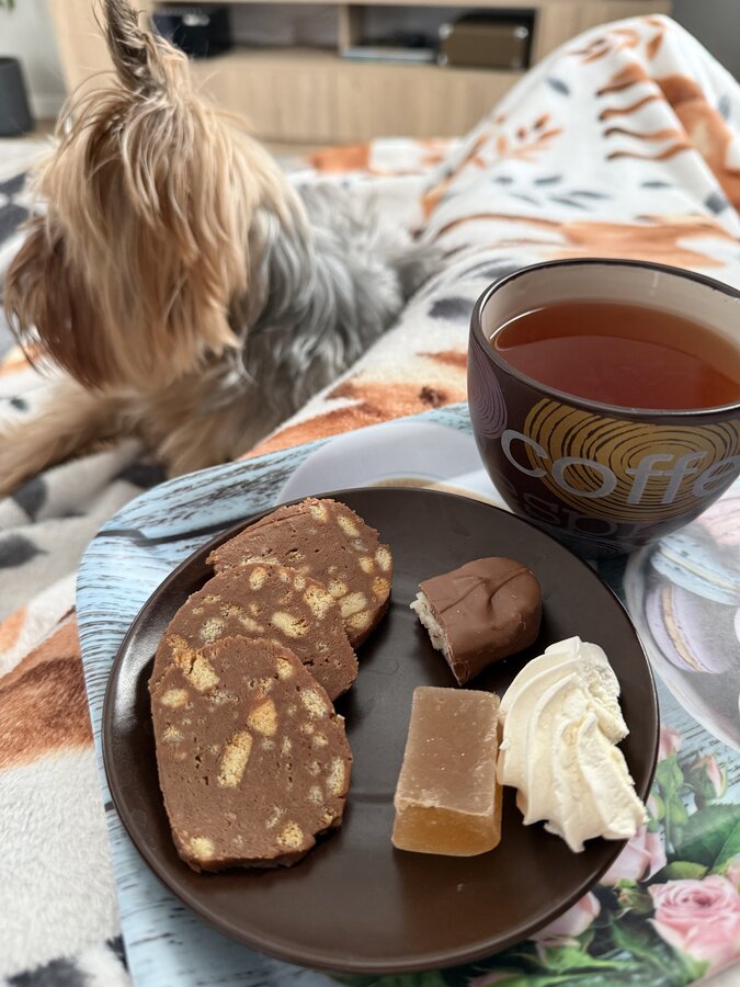шоколадная колбаска, пирог,