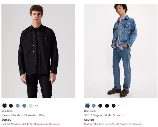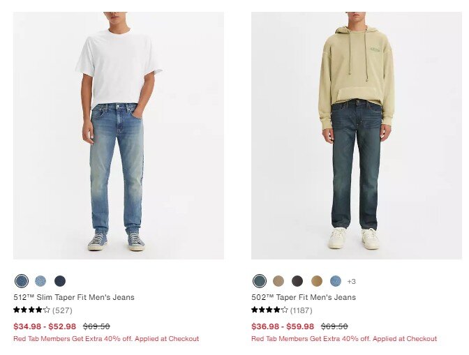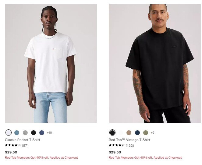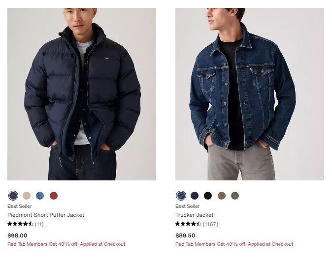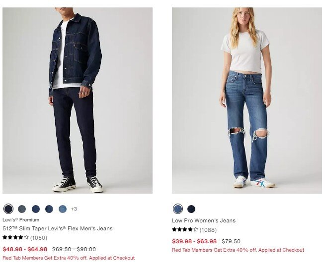 В акции участвуют товары с надписью Red Tab Members Get 40% off. Applied at Checkout
