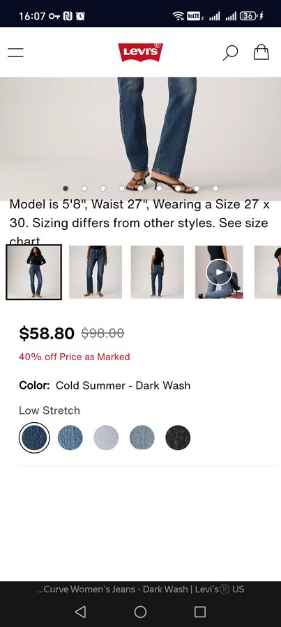 Ссылка : https://www.levi.com/US/en_US/clothing/women/jeans/straight/501-curve-womens-jeans/p/0036A0005 АРТ/Название : 501® CURVE WOMEN'S JEANS Цвет(копировать : Cold Summer - Dark Wash Размер : Waist 27 Length 32 Скидка/Примеч : Red Tab Members Get 40% off. Applied at Checkout Забираю из : РЦРМаркса(НСК) [5880] оплата внесена