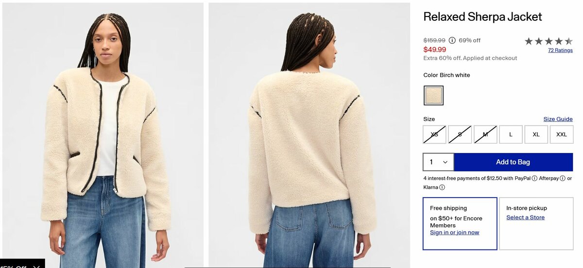 Дополнительная скидка 60% на товары с надписью Extra 60% off. Applied at checkout