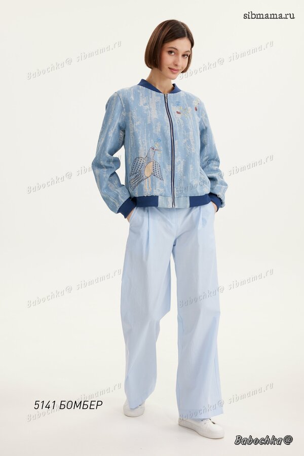 Стильный универсальный бомбер с удобными карманами. Модель свободной формы полуприлегающего силуэта, с овальным вырезом горловины, со спущенным плечом.Перед и спинка дикорированы дезайнерской вышивкой Горловина манжеты и низ декорированы довязом.